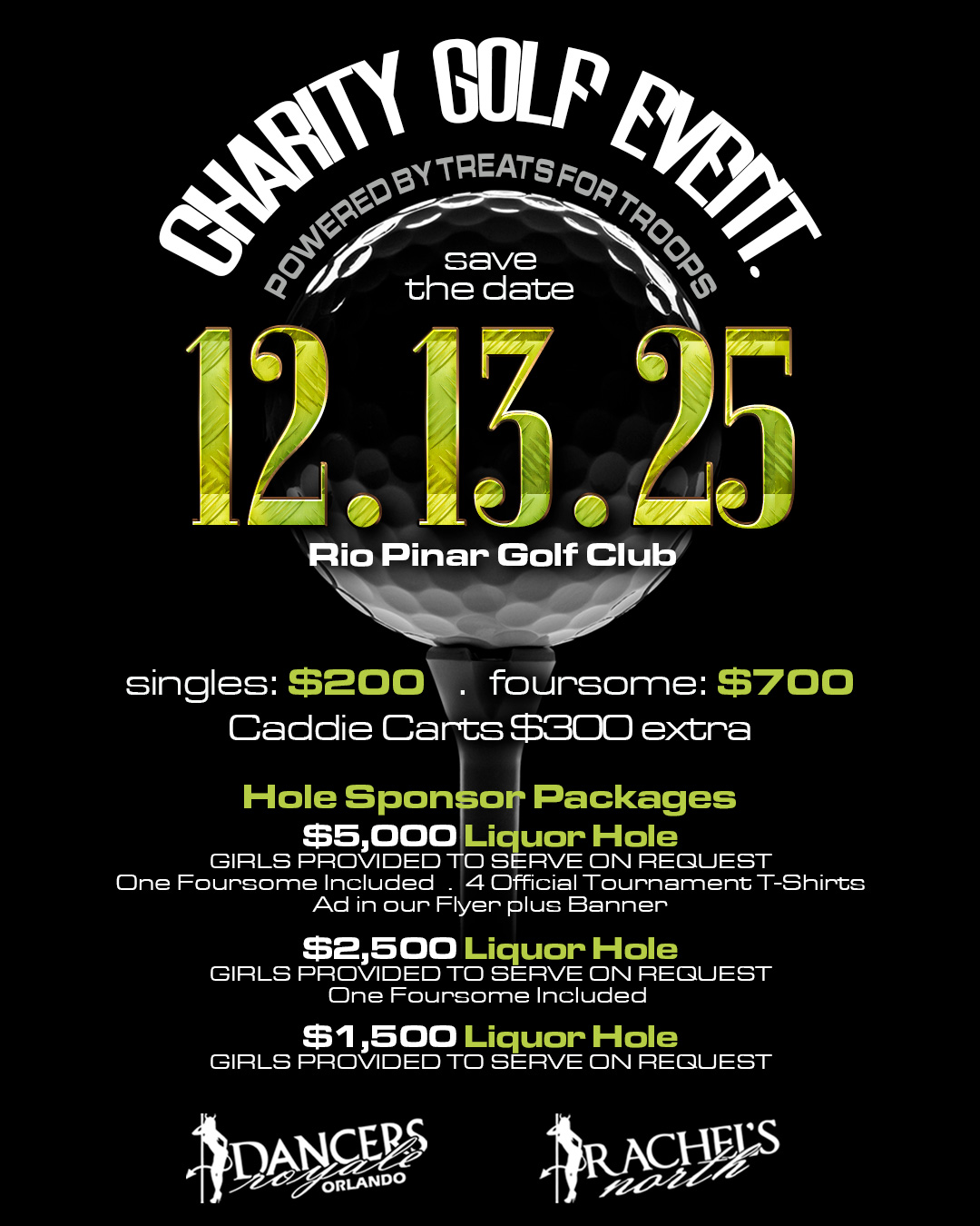 Join us for a day of fun, competition, and giving back at the Charity Golf Tournament on Saturday, December 13, 2025 at Rio Pinar Golf Club. Proceeds from this event will benefit Treats for Troops.
